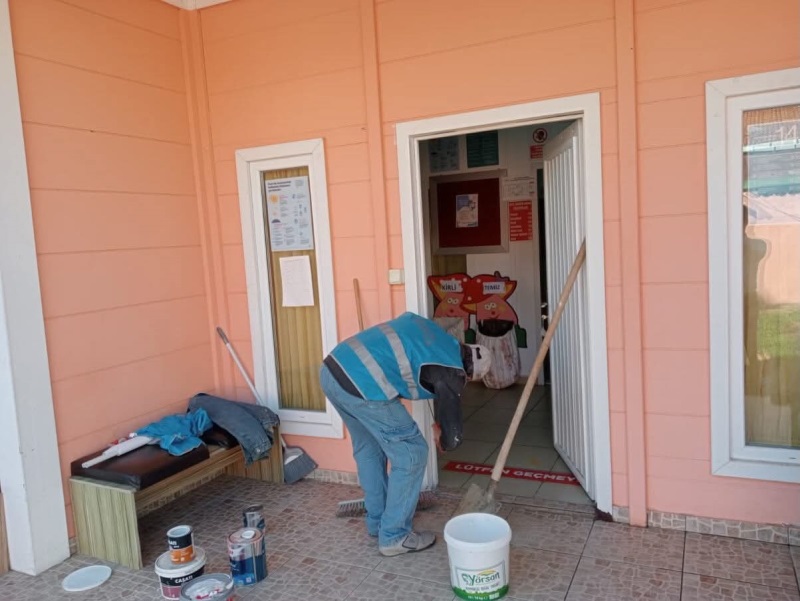 Ali Ağaoğlu Anaokulu'nda gerçekleştirilen boya ve çevre temizliği etkinliğinde;