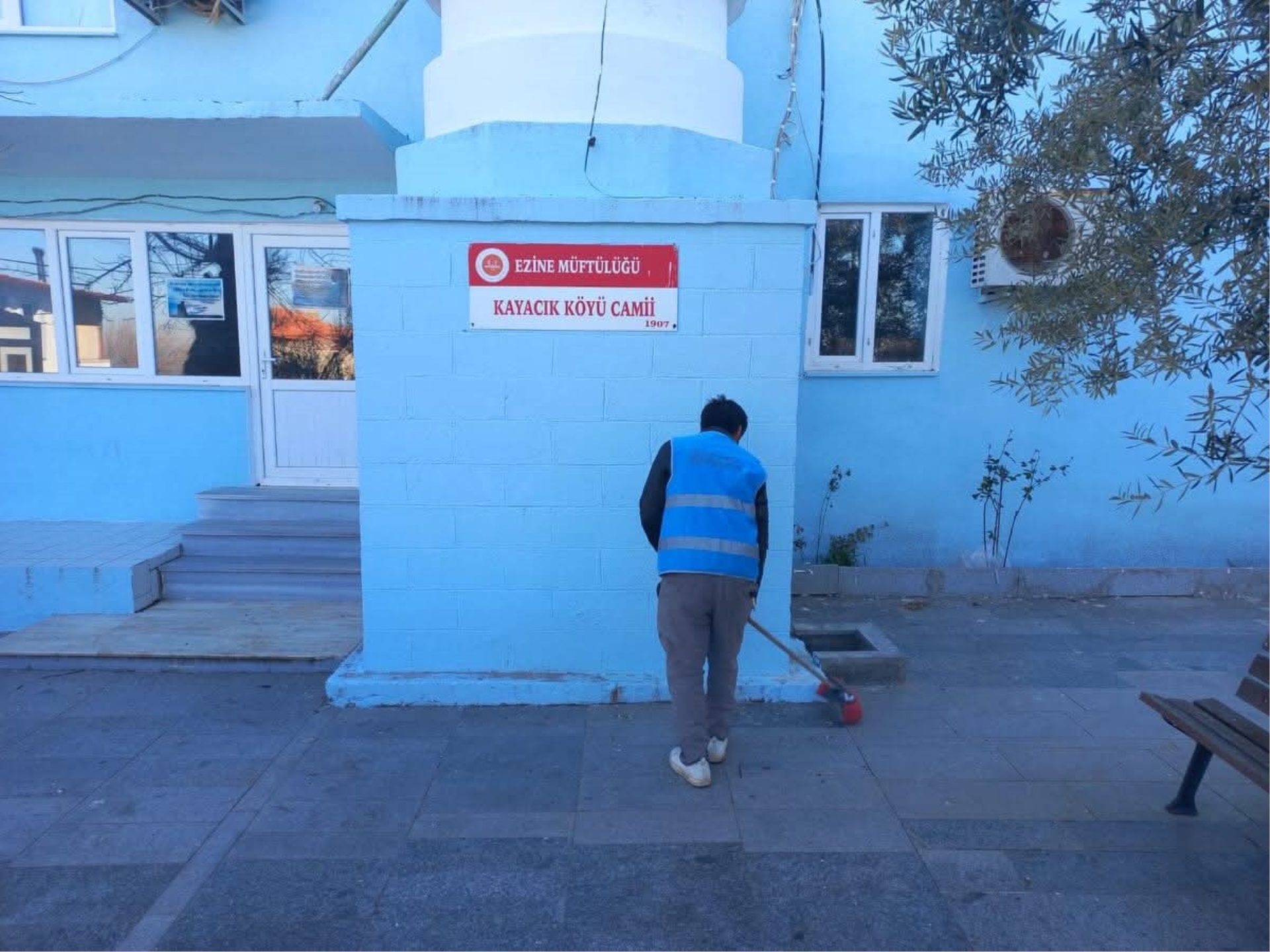 Ezine Kayacık Köyü Camii'nde temizlik faayliyeti gerçekleştirildi.