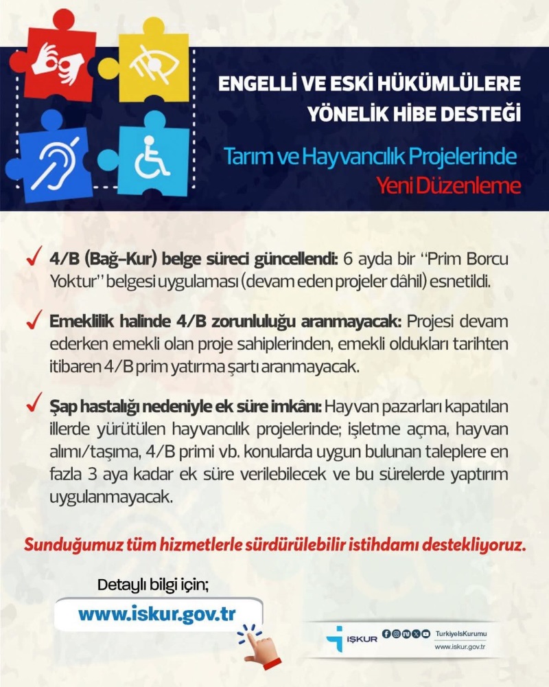 Engelli ve eski yükümlülere yönelik tarım ve hayvancılık hibe desteklerinde yeni düzenleme hayata geçirildi.